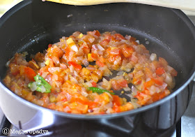 4. Once the raw smell of the ginger disappears, then add the chopped tomatoes. Add a little salt so that the tomatoes gets cooked fast.